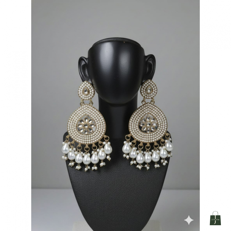 Add a touch of timeless elegance to your look with these Royal Pearl Kundan Chandbali Earrings. Beautifully crafted with intricate Kundan work, these earrings feature a classic circular design highlighted with delicate pearl detailing and graceful pearl drops. The rich gold-toned finish enhances their traditional charm, making them perfect for weddings, festive occasions, and ethnic celebrations.