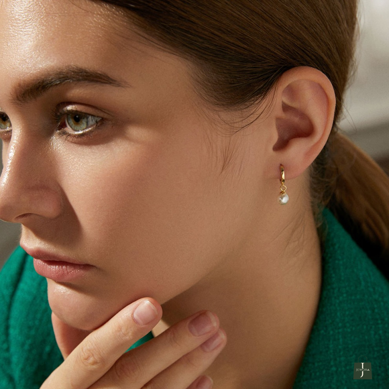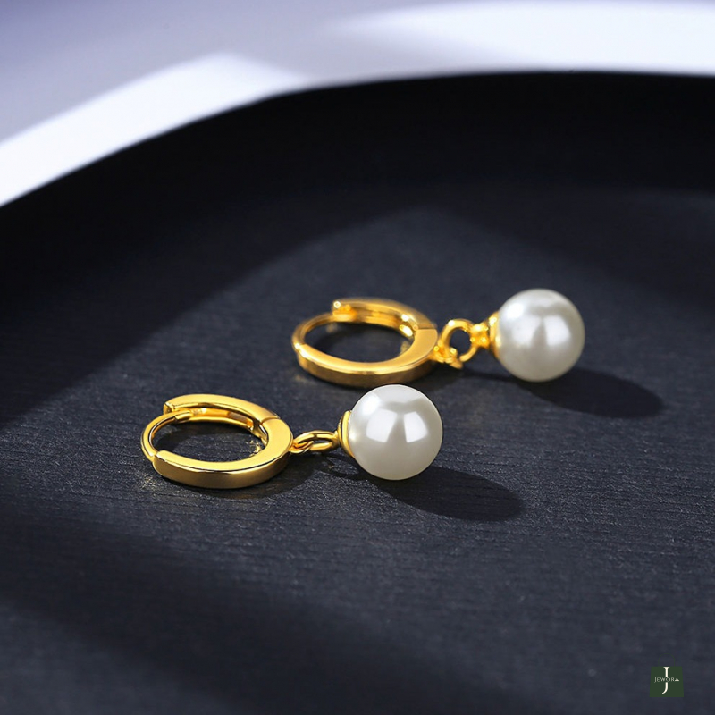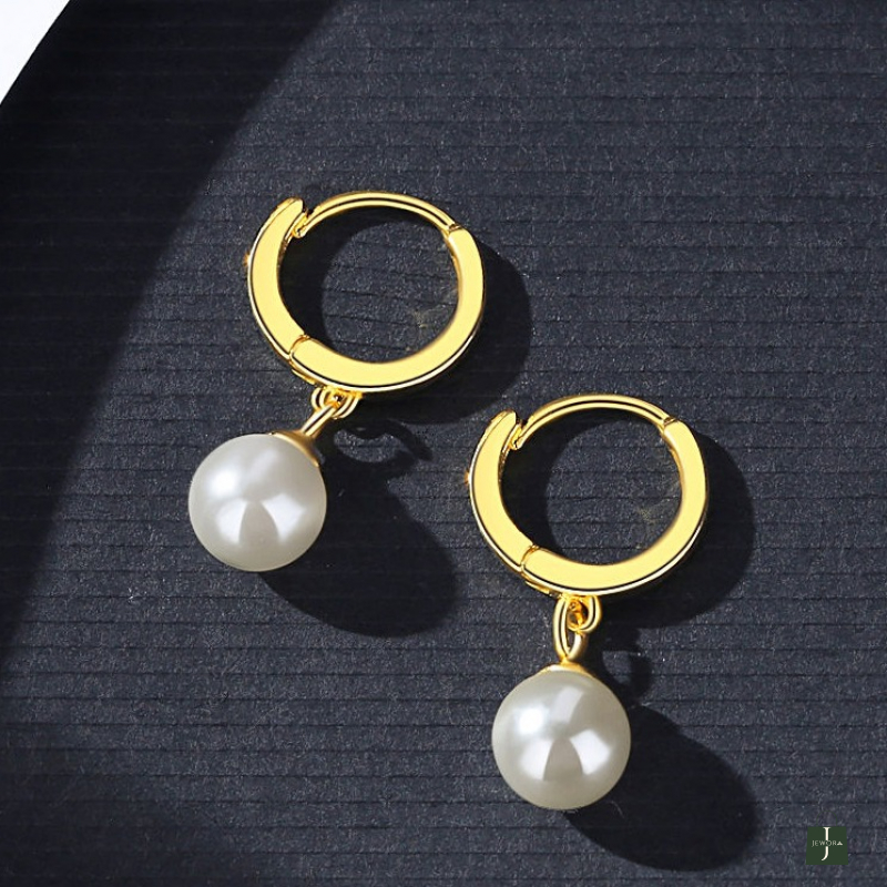 Enhance your everyday elegance with these beautifully crafted 925 Sterling Silver Pearl Drop Hoop Earrings. Designed with a minimal yet classy appeal, these earrings feature a smooth 6 mm pearl charm suspended from a sleek 14K gold-plated hoop, making them perfect for both daily wear and special occasions.