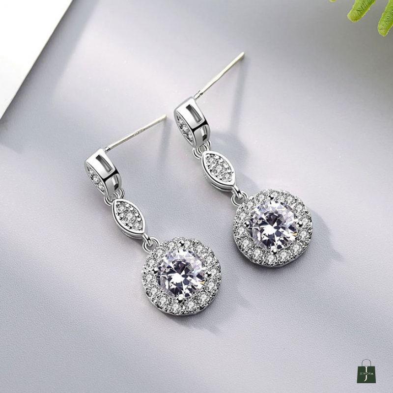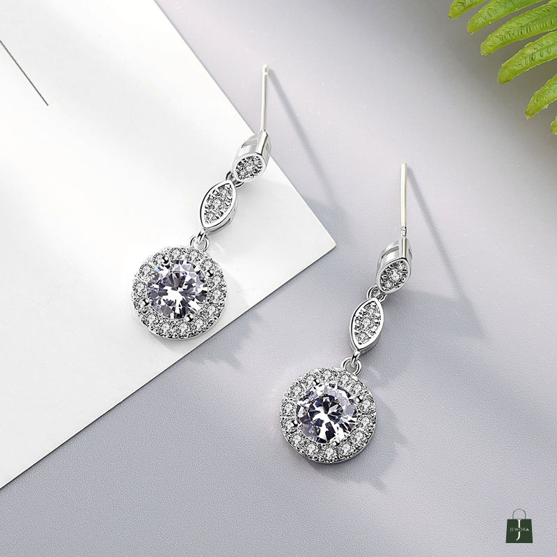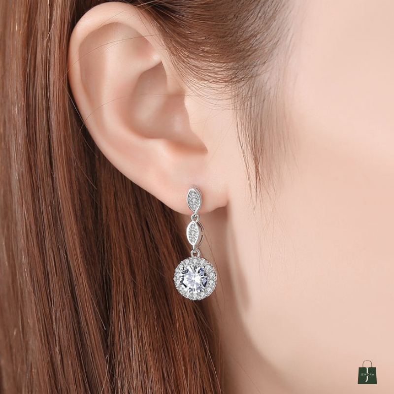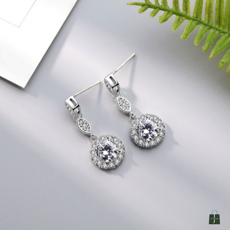 Add timeless elegance to your jewelry collection with these stunning 925 Sterling Silver Halo Drop Earrings. Designed with precision, each earring features a sparkling round-cut cubic zirconia centerpiece, encircled by a halo of smaller stones for extra brilliance. The marquise-shaped accents along the drop add sophistication and shine, making these earrings perfect for both everyday wear and special occasions.