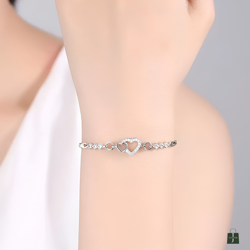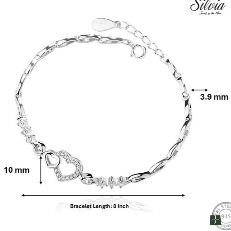 Add a touch of elegance to your style with this beautifully crafted 925 Sterling Silver Heart Charm Bracelet. Designed for modern women and girls, this bracelet features a premium silver chain with a sparkling heart motif, making it perfect for daily wear, office wear, gifting, or special occasions.
