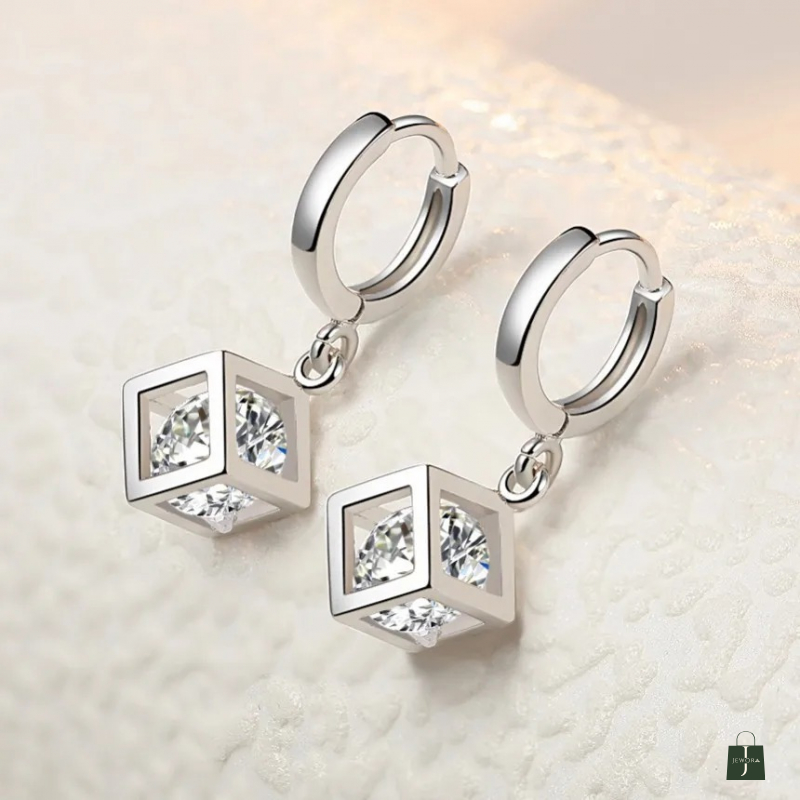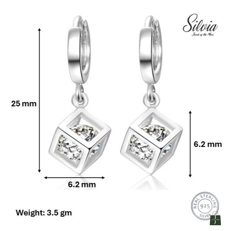 Add a touch of elegance to your look with these 925 Sterling Silver Shiny Square Cubic Zircon Hoop Earrings. Designed for the modern woman, these earrings feature a unique geometric cube design with sparkling zircon stones encased in a sleek silver frame. Perfect for parties, festive occasions, or daily wear, they radiate timeless charm and sophistication. Product Highlights: Material: 925 Sterling Silver Stone Type: Premium Cubic Zircon (CZ) Design: Geometric square dangle with hoop closure Finish: High-polish, anti-tarnish coating Style: Elegant & contemporary Ideal For: Party wear, office wear, and gifting Occasion: Birthday, Anniversary, Valentine’s Day, Festive gifts Care Instructions: Keep away from moisture, perfumes, and chemicals. Store in a dry jewelry box or pouch for lasting shine.
