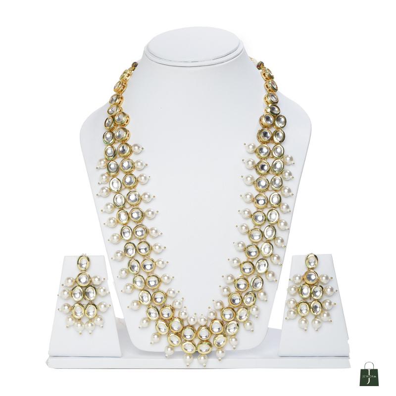 AAKIBEE Women Large Kundan Pearl Necklace Set