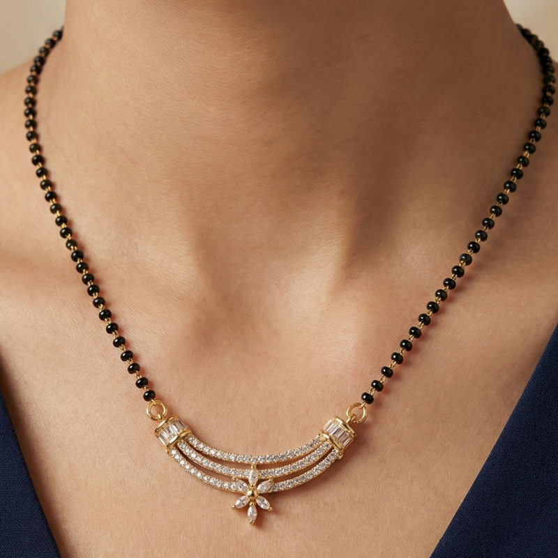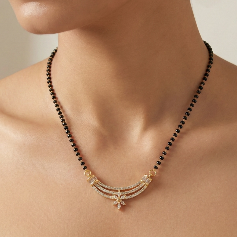 Aashirvaad Sutra embodies the blessings and protection associated with marriage. The black beads are believed to shield the relationship from negative influences, while the American diamonds and 99.9 gold polish represent purity, prosperity, and elegance. This mangalsutra is designed for women who cherish tradition with modern sophistication.