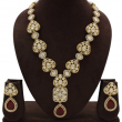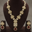Paired with matching drop earrings featuring ruby teardrop stones, this set is perfect for bridal wear, wedding functions, festive celebrations, and special occasions. Its timeless design blends traditional charm with modern elegance.