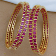 Elevate Your Traditional attire with our exquisite Stone Bangle crafted from high quality brass and plated with 1 gram micro gold using 24-carat pure gold.These bangles arranged in rectangular pattern are filled with dazzling white AD stone,ruby red or emerald green stone adds a touch of sparkle to your look.Mixing of colours elevate your elegance which Can be paired with kancheepuram silk sarees,silk skirts and half sarees.