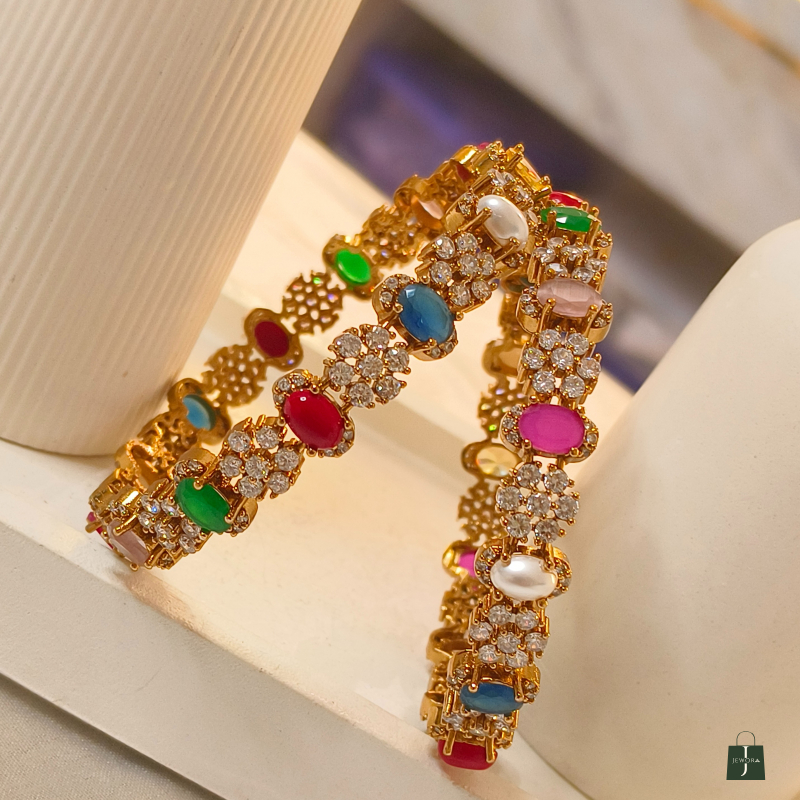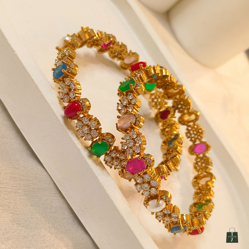 AD DIAMONDS GOLDEN BRASS BANGLES ( SET OF 2)