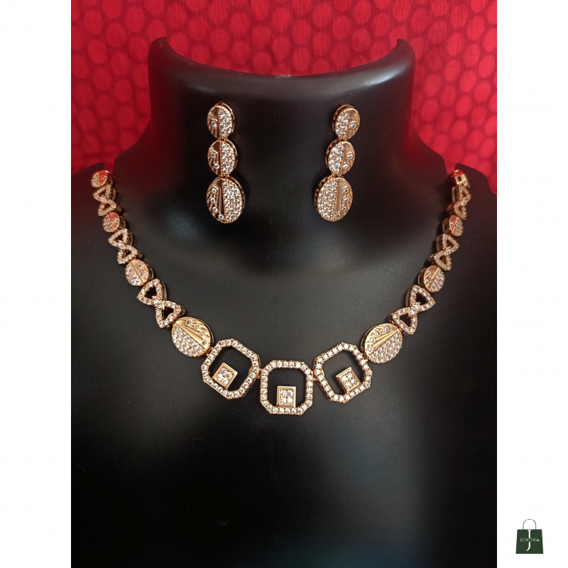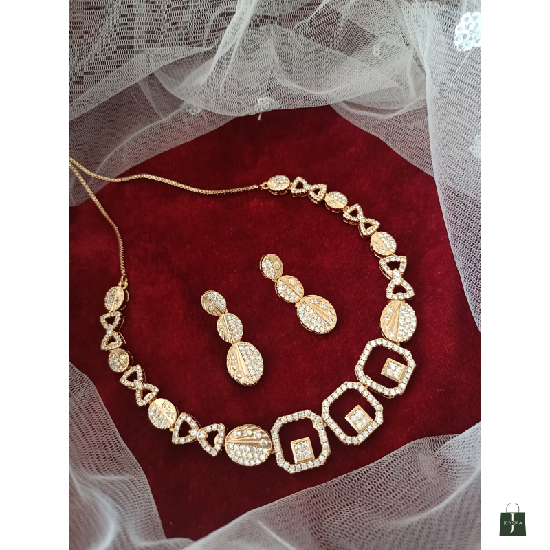 Elevate your elegance with our stunning American Diamond Golden Necklace Set. This exquisite jewelry piece features a dazzling array of American diamonds that shimmer beautifully against a rich golden backdrop, making it perfect for any special occasion. The intricate design and craftsmanship ensure that you’ll stand out, whether at a party, or formal event. Treat yourself or a loved one to this timeless accessory that combines luxury and sophistication effortlessly.