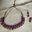 Elegant handmade necklace and earring set featuring beads paired with antique gold triangular charms. The necklace has a simple cord closure and showcases an eye‑catching semi‑circular arrangement of beads and charms. Perfect for adding a touch of vintage charm to any outfit. Ideal for casual or ethnic wear.