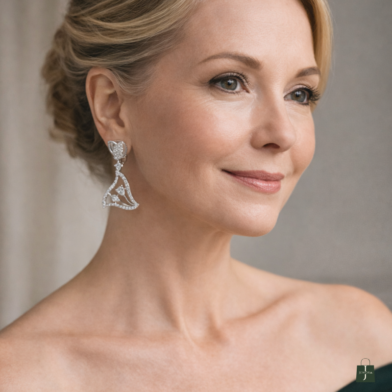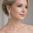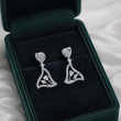 Add a touch of geometric grace to your look with these stunning drop earrings. Set in a warm, polished silver tone, each earring features an openwork, rounded triangle design that dangles elegantly. The frame is meticulously lined with sparkling pavé crystals, while a trio of brilliant-cut stones creates a glittering centerpiece. Finished with a sparkling pavé-set heart at the stud, these Ammaira Jewelz earrings are the perfect blend of modern design and timeless sparkle.