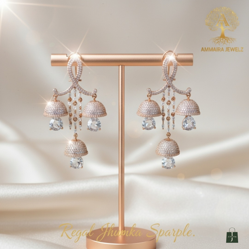 Elevate your celebration. Shop The Regal Jhumka Sparkle Drops at Ammaira Jewelz today.