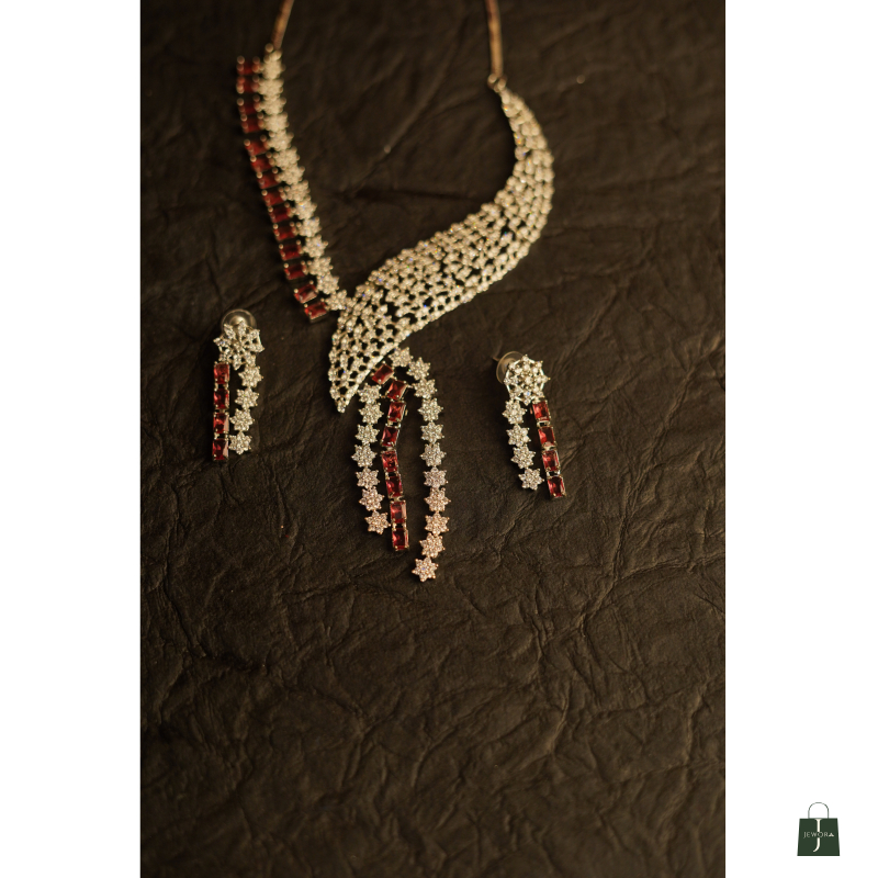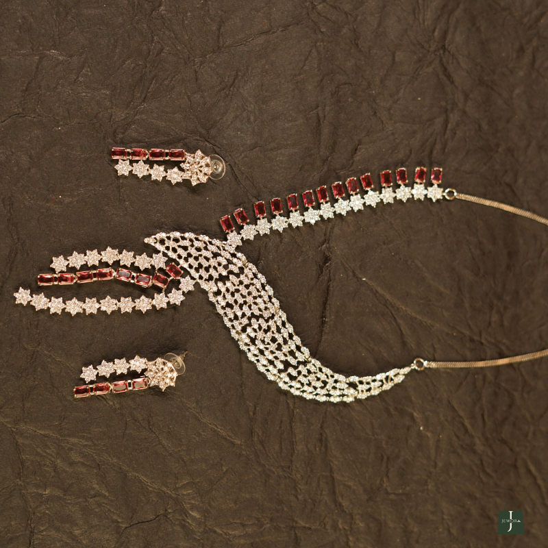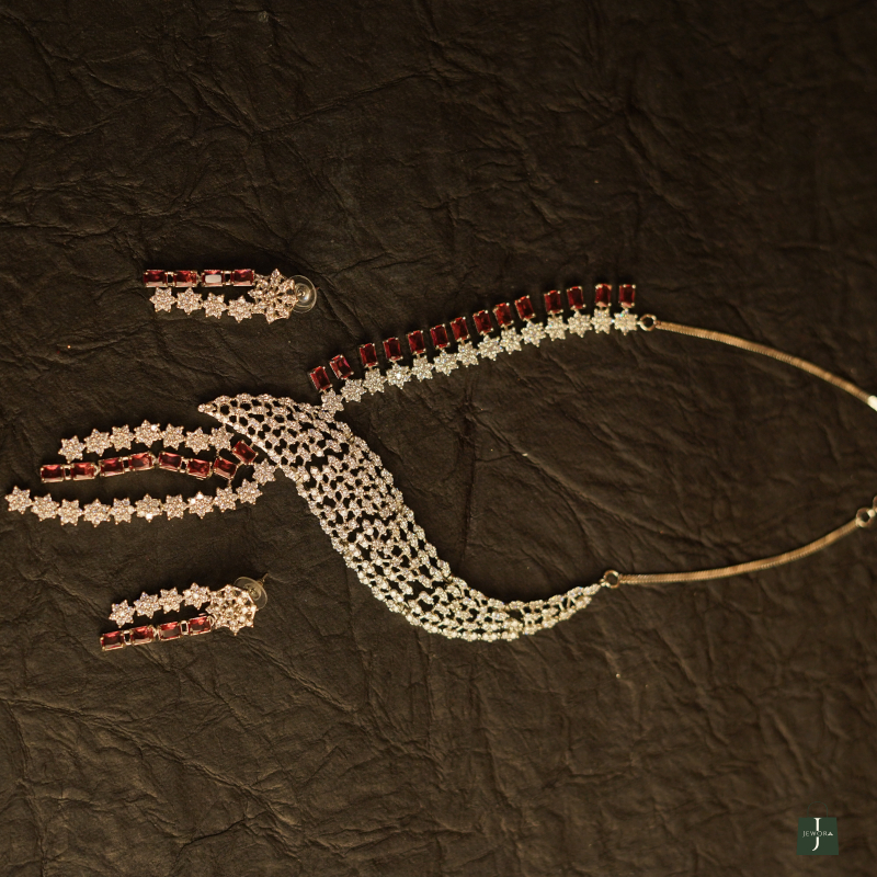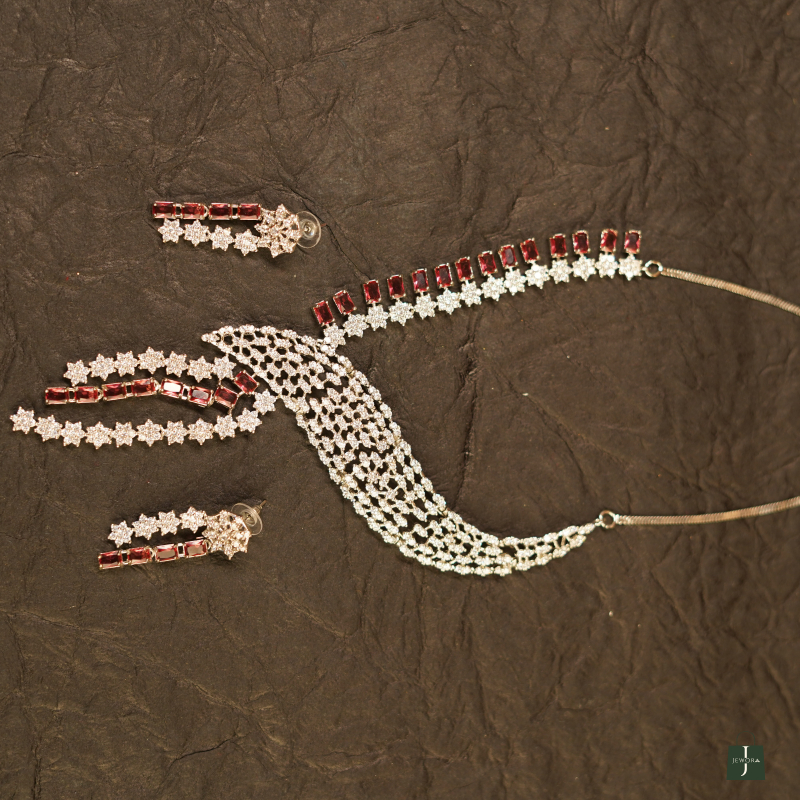 AMR Shining Diva AD Set Feather Pattern Jewellery