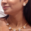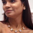 Expertly crafted with metal mesh and diamond shaped kundans, the Anokhi necklace set is a stunning addition to any outfit. Its intricate design showcases superior craftsmanship and attention to detail, making it an elegant and timeless piece for any occasion. Complete the look with the matching earrings for a truly dazzling effect.