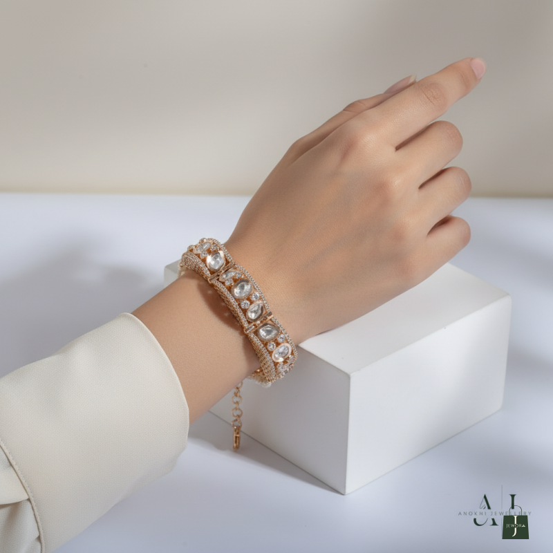 Illuminate your look with our radiant Kundan bracelets. Inspired by the opulence of Indian royalty, these bracelets feature dazzling Kundan stones set in regal designs that command attention. Handcrafted with meticulous attention to detail, each piece exudes elegance and charm. Make a bold statement and embrace the splendor of Kundan craftsmanship with our luxurious bracelets.