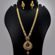 Embrace royal elegance with this exquisite Gold-Plated Rani Haar Set, a masterpiece designed for the modern bride. This majestic long-length necklace features a multi-layered textured chain that leads to a breathtaking, oversized teardrop pendant. Intricately crafted with traditional filigree work and delicate floral motifs, the central medallion captures the light with every movement.