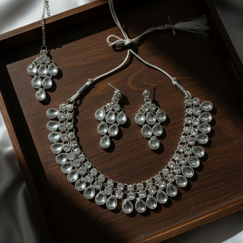 Add a touch of timeless elegance to your look with this premium-quality necklace, thoughtfully crafted to elevate both everyday outfits and special occasions. Designed with a refined finish and superior craftsmanship, this necklace reflects sophistication, grace, and modern luxury.Made from high-quality materials, it offers a smooth, polished shine that stays radiant over time. The elegant design complements both traditional and contemporary styles, making it a versatile addition to your jewelry collection. Lightweight and comfortable to wear, it sits beautifully on the neckline, enhancing your natural charm with a subtle yet luxurious appeal.Perfect for festive occasions, parties, weddings, office wear, or romantic gifting, this necklace is an ideal choice for those who appreciate fine detailing and premium quality. Whether styled with ethnic attire or western outfits, it adds a classy statement without being overpowering.