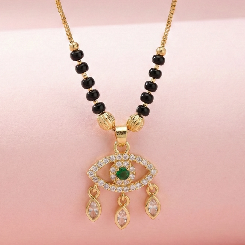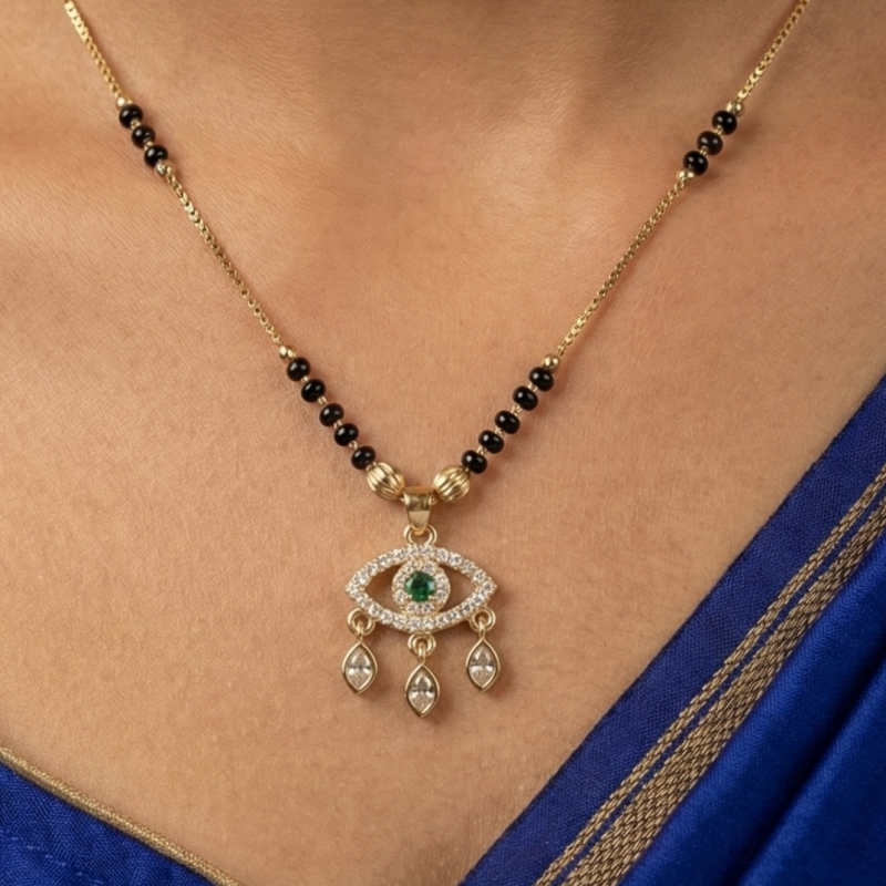 Anuraag Sutra celebrates the quiet strength of marriage and the emotions that bind two souls together. Each black bead represents protection, faith, and continuity, while the delicate sparkle of American diamonds reflects joy and harmony. Crafted with 99.9 gold polish, this mangalsutra is designed for women who honor tradition while embracing refined, contemporary beauty.