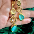 This elegant pendant set features a stunning combination of aqua-toned stones paired with warm champagne crystals, beautifully set in a sleek gold finish. The layered drop design adds movement and sophistication, making it a perfect blend of modern elegance and subtle glamour. Ideal for both day and evening wear, this set enhances your look with a refreshing pop of color and refined shine.