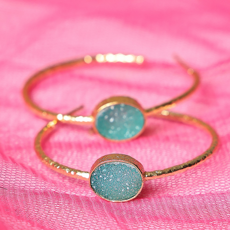 Upgrade your everyday look with these stylish and minimal hoop earrings. Designed with a sleek gold-toned hoop and accented with a subtle aqua stone, these earrings bring a fresh and modern vibe to your style. Lightweight and versatile, they are perfect for daily wear, office outfits, or casual outings, adding just the right touch of elegance.
