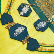 Designed with colorful fabric and embellished with beads, this ethnic jewellery piece adds a vibrant touch to any traditional outfit