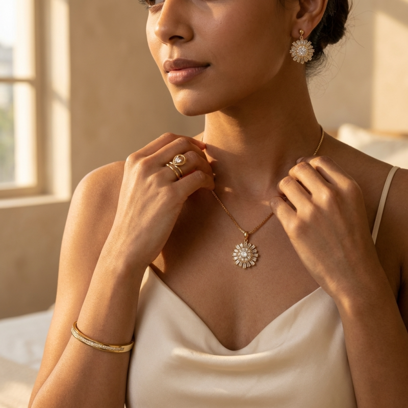 Sunburst Pendant Necklace: A breathtaking pendant inspired by the brilliance of a sunburst, designed to capture and reflect every spark of light.