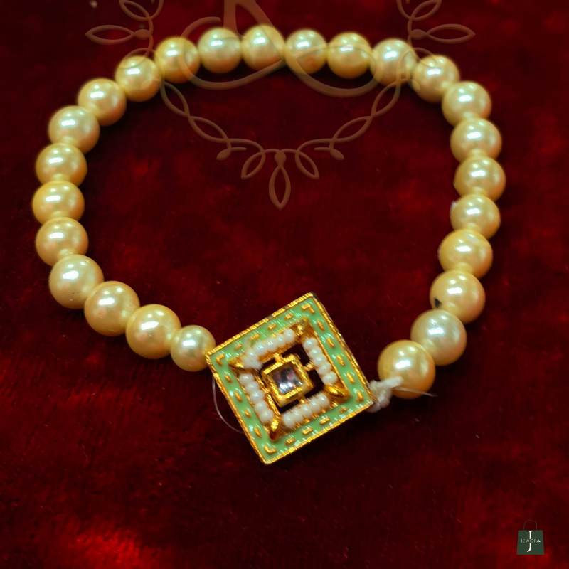 This timeless bracelet features lustrous pearls beautifully complemented by a meenawork charm at the center Perfect for festive occasions, celebrations, or adding grace to everyday wear