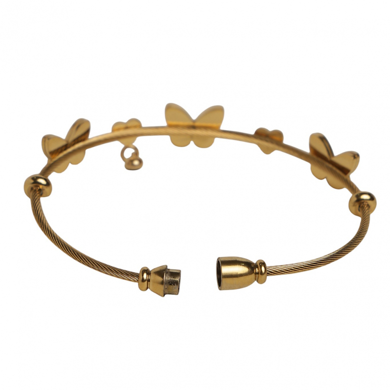 Add a touch of charm and femininity to your style with this beautifully designed bracelet featuring butterfly and heart motifs. Crafted in a sleek gold-tone finish, the bracelet is adorned with enamel-filled butterfly accents in black and white, along with cute heart charms and a tiny dangling bead for added elegance. Its lightweight and trendy design makes it perfect for everyday wear while still being stylish enough for special occasions.