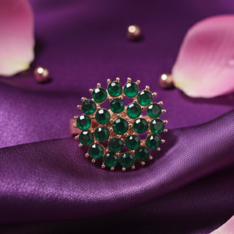 Add instant glamour to your look with this stunning floral cluster ring. Designed in a radiant sunburst pattern, this statement piece features high-shine crystals set in a rose gold finish, creating a luxurious sparkle from every angle. Perfect for festive occasions, weddings, parties, or gifting, this adjustable ring ensures a comfortable fit while making a bold style statement.