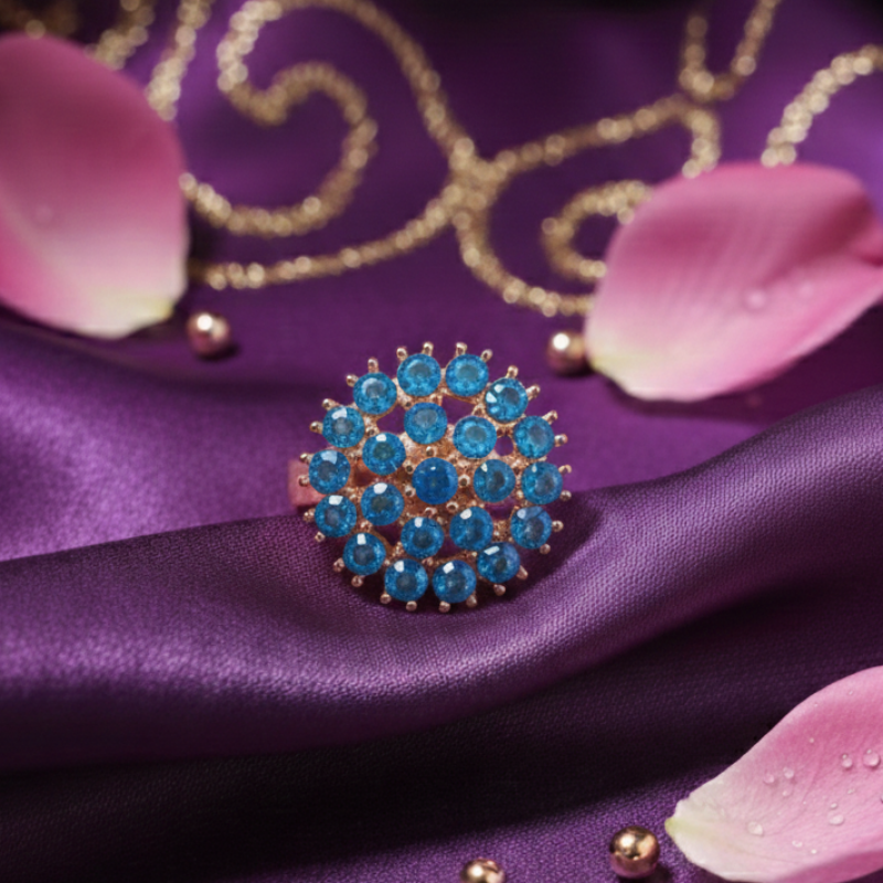 Add instant glamour to your look with this stunning floral cluster ring. Designed in a radiant sunburst pattern, this statement piece features high-shine crystals set in a rose gold finish, creating a luxurious sparkle from every angle. Perfect for festive occasions, weddings, parties, or gifting, this adjustable ring ensures a comfortable fit while making a bold style statement.