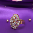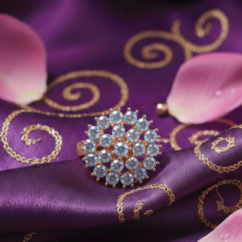 Add instant glamour to your look with this stunning floral cluster ring. Designed in a radiant sunburst pattern, this statement piece features high-shine crystals set in a rose gold finish, creating a luxurious sparkle from every angle. Perfect for festive occasions, weddings, parties, or gifting, this adjustable ring ensures a comfortable fit while making a bold style statement.