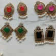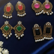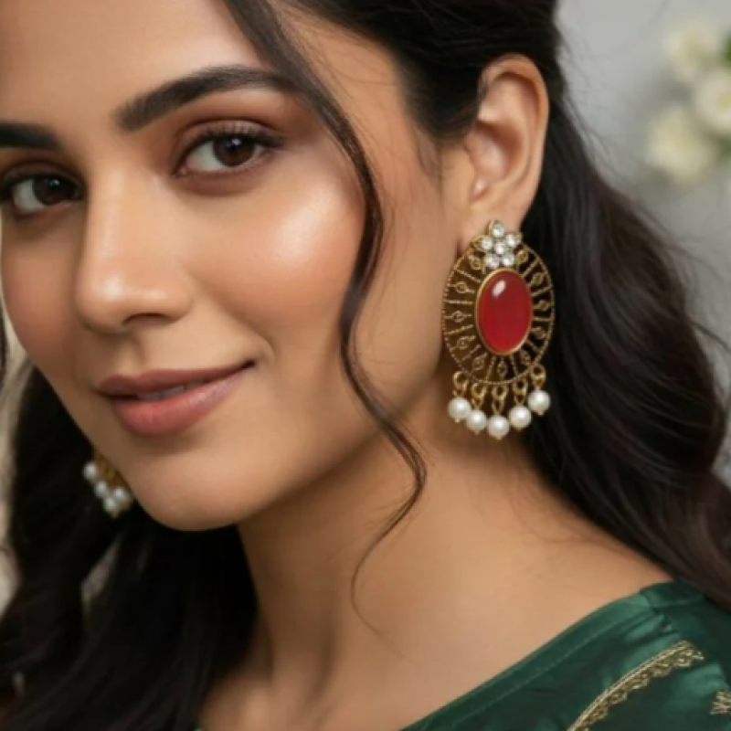Add timeless elegance to your jewelry collection with this exquisite Antique Earrings Combo, featuring four beautifully crafted designer pairs in rich stone shades – Red, Pink, Green, and Black. Each pair showcases intricate antique gold-finish detailing, adorned with statement stones and graceful pearl drops that enhance their traditional appeal. Designed to complement sarees, lehengas, and ethnic suits, these earrings bring effortless sophistication to every festive look.