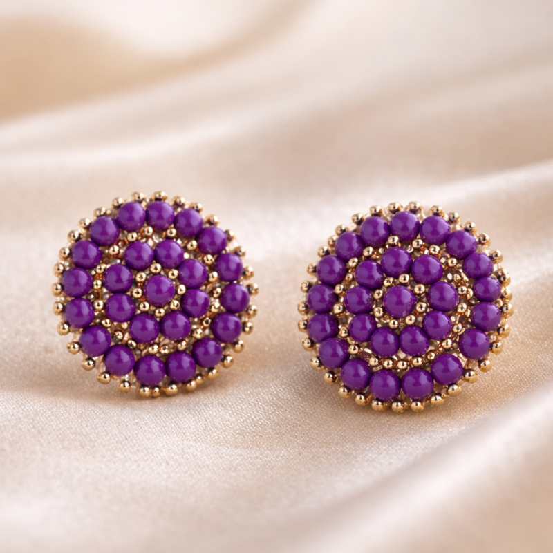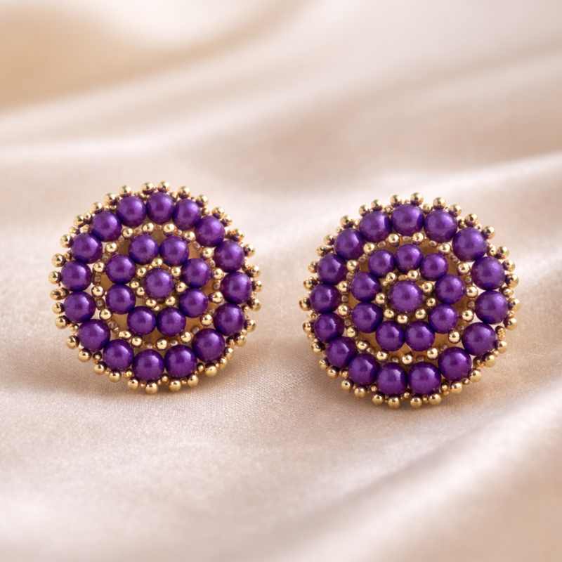 Avnee's Classic Beaded Round Stud Earrings