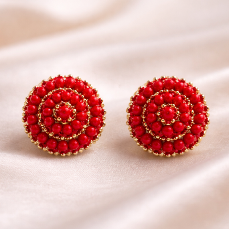 Minimal yet eye-catching round stud earrings crafted with micro bead detailing for a bold textured finish. These studs are designed to elevate simple outfits - whether paired with dresses, kurtis, co-ords, or denim. Lightweight, vibrant and easy to style, they’re perfect for adding personality without going over the top. An effortless everyday statement piece.