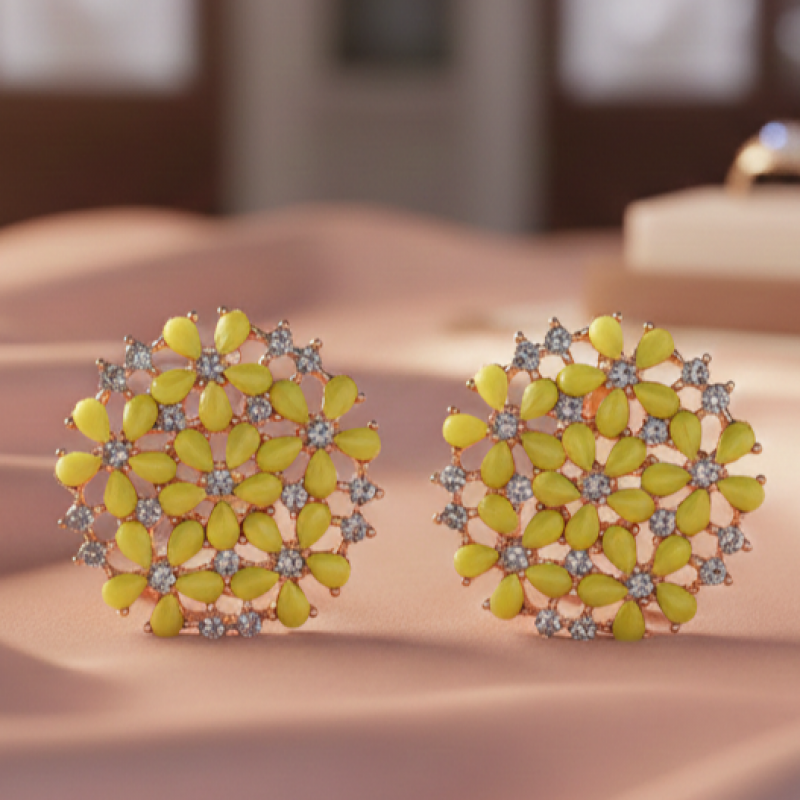 A beautifully crafted floral cluster stud designed to add instant charm to your look. Featuring teardrop-shaped crystal stones arranged in a blooming pattern with delicate micro accents, these earrings bring the perfect balance of elegance and vibrance.Lightweight yet statement-making, they are ideal for festive wear, wedding functions, parties, and special occasions.Available in multiple vibrant shades to match every outfit mood.