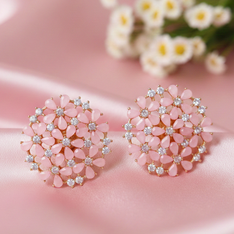 A beautifully crafted floral cluster stud designed to add instant charm to your look. Featuring teardrop-shaped crystal stones arranged in a blooming pattern with delicate micro accents, these earrings bring the perfect balance of elegance and vibrance.Lightweight yet statement-making, they are ideal for festive wear, wedding functions, parties, and special occasions.Available in multiple vibrant shades to match every outfit mood.