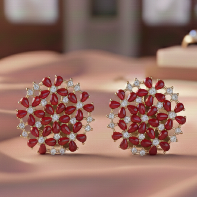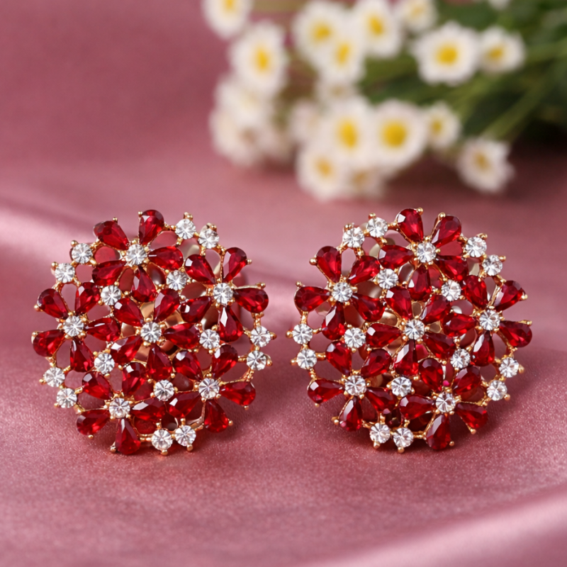 A beautifully crafted floral cluster stud designed to add instant charm to your look. Featuring teardrop-shaped crystal stones arranged in a blooming pattern with delicate micro accents, these earrings bring the perfect balance of elegance and vibrance.Lightweight yet statement-making, they are ideal for festive wear, wedding functions, parties, and special occasions.Available in multiple vibrant shades to match every outfit mood.