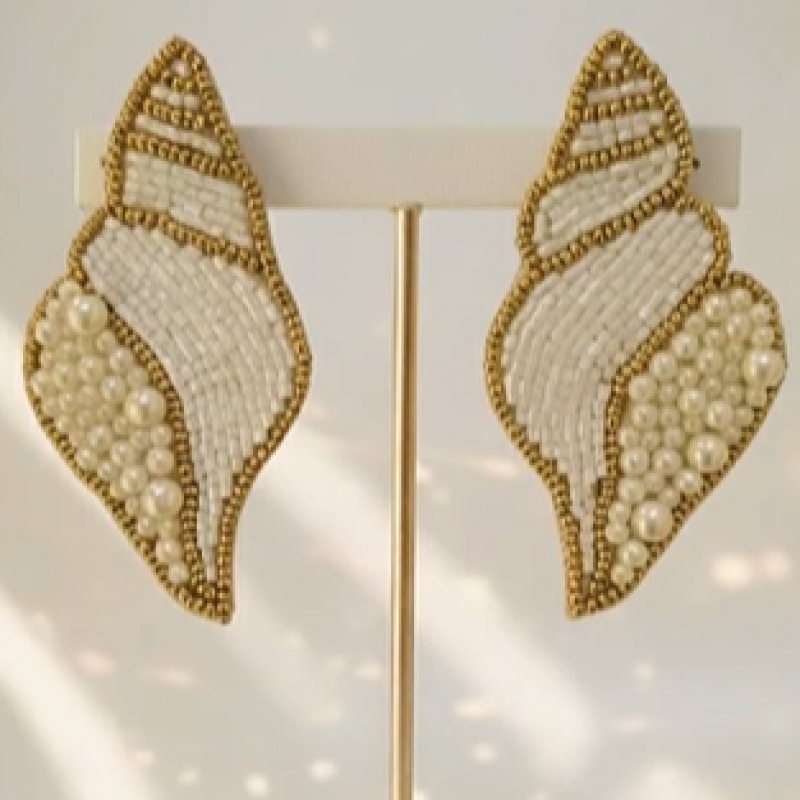 Bring the beach to your wardrobe with our Hand-Beaded Seashell Earrings.