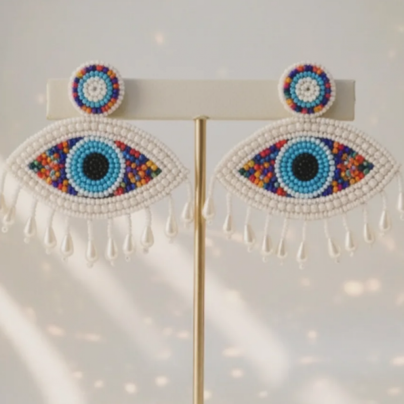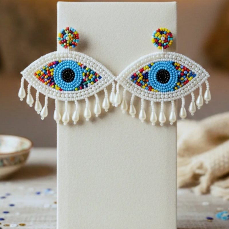 Hand-beaded treasure for the ones who love pieces that tell a story. Meet our Signature Evil Eye Statement Earrings - crafted bead by bead to bring colour, charm, and a little cosmic protection to every look you create. Each pair takes hours of meticulous work, blending pearls, vibrant beads and delicate drops that sway like tiny celebrations. Lightweight, bold, and designed to stand out, these earrings aren’t just accessories… they’re conversation starters.