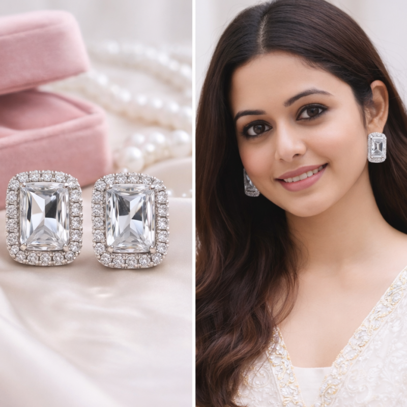 Premium quality rectangular stud earrings crafted with artificial stones and alloy base. Designed in a minimal style, these earrings are lightweight, comfortable, and suitable for daily wear. Ideal for women and girls, these studs pair well with western casual outfits and everyday looks. Push-back closure ensures a secure and easy fit. Perfect choice for regular use and casual styling.