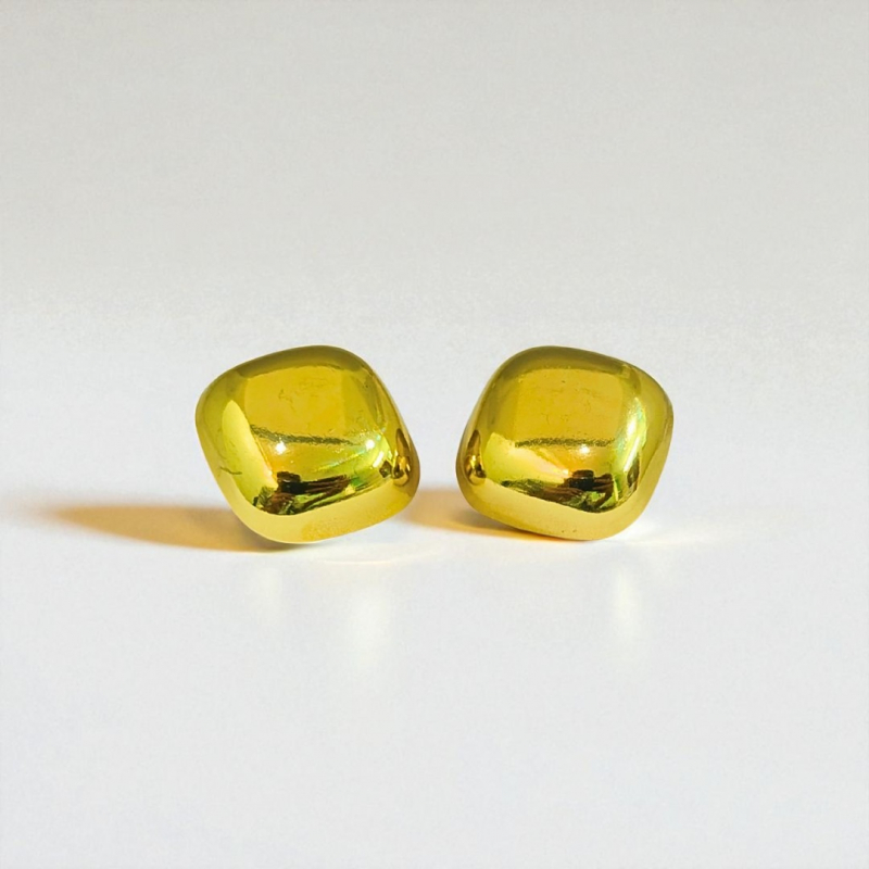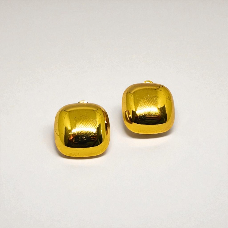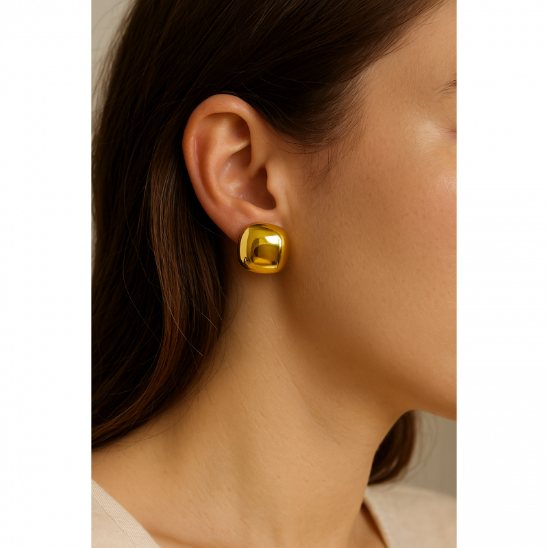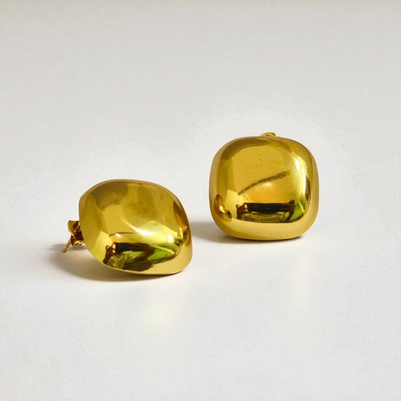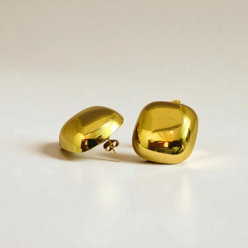 Sleek and modern, these gold plated stud earrings for women feature a rounded square silhouette with a mirror-like finish. Their minimalist design and bold shape make them perfect for statement styling. Crafted from 18k plated stainless steel, they are skin-safe, waterproof, and anti-tarnish—a versatile pair that adds polish to any outfit.