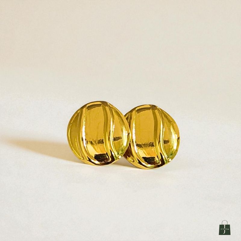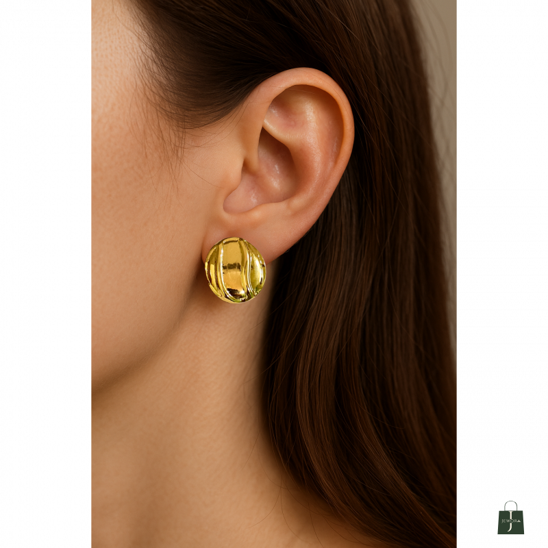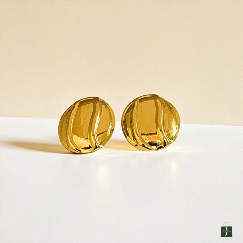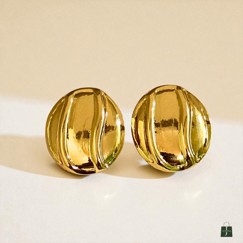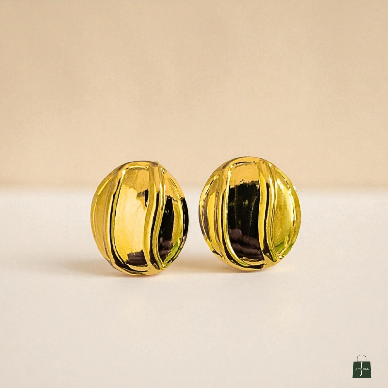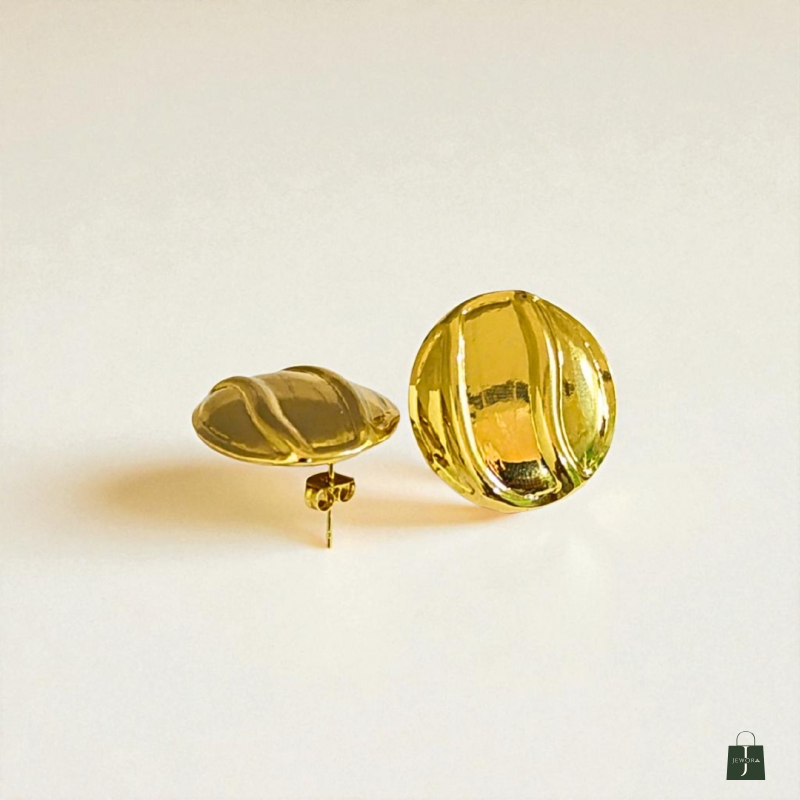 Elegant and artistic, these gold plated stud earrings for women feature a sculpted wave design with raised ridges that add depth and shine. Their glossy finish and rounded form make them perfect for statement styling. Crafted from 18k plated stainless steel, they are skin-safe, waterproof, and anti-tarnish—a bold yet refined addition to your jewellery collection.