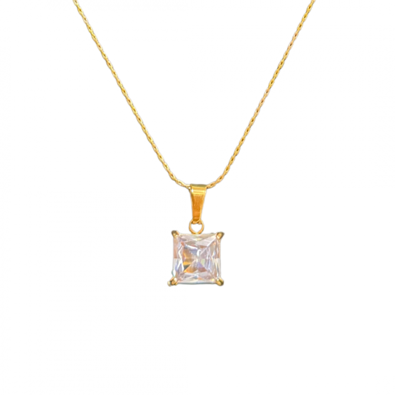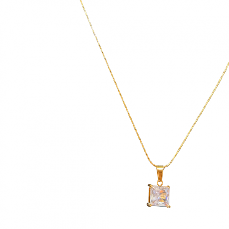 Necklace: fine chain with square-cut stone pendant