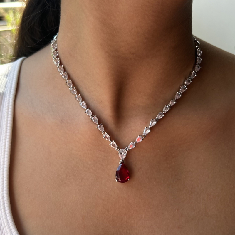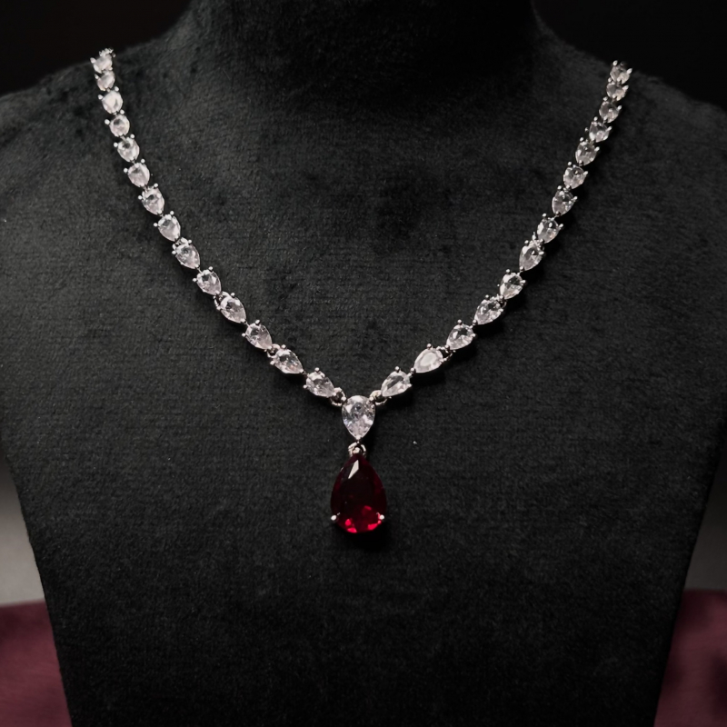 Bhavdiya American Diamond Ruby Stone Necklace | Premium AD Choker for Women | Sparkling Ruby Centerpiece with High-Shine Diamonds | Elegant Party & Festive Wear Jewellery | Lightweight Bridal Necklace | BHPM010