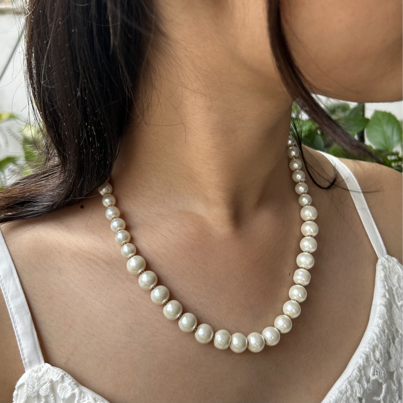 A timeless symbol of grace, this Single Pearl Necklace features premium 4mm pearls with triple-layer high shine coating for a radiant finish. Secured with a gold-polished lock, it sits beautifully on the neckline, perfect for office wear, festive looks, or gifting. Lightweight, durable, and handcrafted for sophisticated everyday elegance.