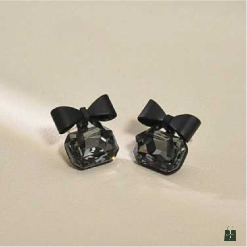 Elegant yet playful, these black bow stud earrings for women make a versatile addition to any jewelry collection and a thoughtful gift for birthdays, anniversaries, or special occasions.