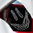 Elevate your style with the Black Diamond Multilayer Necklace, a bold and sophisticated piece designed to make a lasting impression. Crafted with a sleek silver polish, this necklace features multiple delicate layers adorned with shimmering black diamond-like stones that create a striking contrast. The layered design adds depth and elegance, making it perfect for both modern and evening looks. Its refined craftsmanship and radiant finish offer a perfect blend of glamour and edge. Ideal for parties, special occasions, or statement styling, this necklace enhances your outfit with a touch of mystery, confidence, and timeless sophistication.