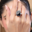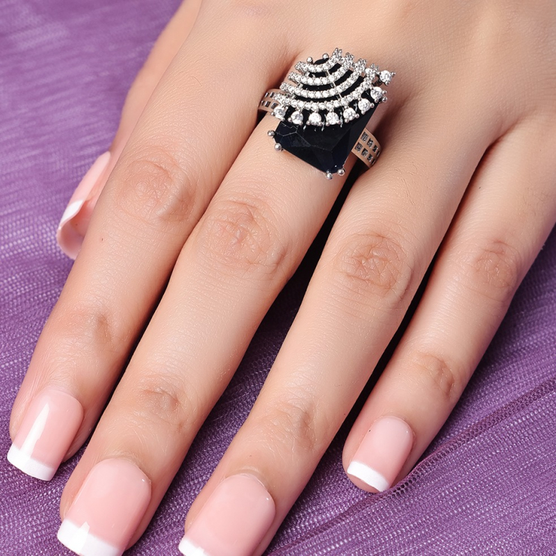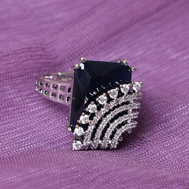 The Black Sparkle with White Diamond Solitaire Ring is a bold blend of mystery and elegance. Featuring a striking black stone at its center, this ring is beautifully enhanced by shimmering white diamond accents that create a captivating contrast. The deep, rich tone of the black stone adds a dramatic touch, while the surrounding brilliance brings out its unique charm.