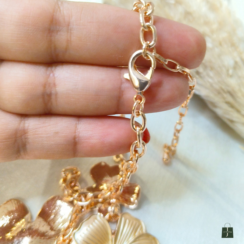 Each flower is finished with a smooth, high-gloss enamel polish and a crystal accent at the center, adding just the right touch of sparkle. This necklace is perfect for casual outings, brunch dates, vacations, and gifting.