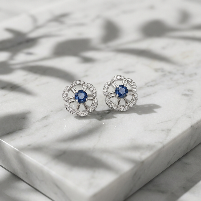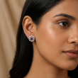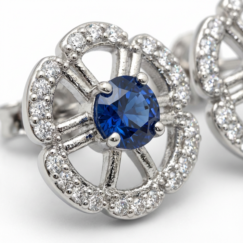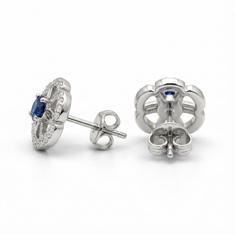 Enhance your jewellery collection with these beautiful floral design stud earrings Featuring a sparkling blue stone centerpiece surrounded by a delicate flower pattern, these earrings are crafted to add a stylish and classy touch to any outfit. Made with high-quality material, they are perfect for both everyday wear and special occasions.