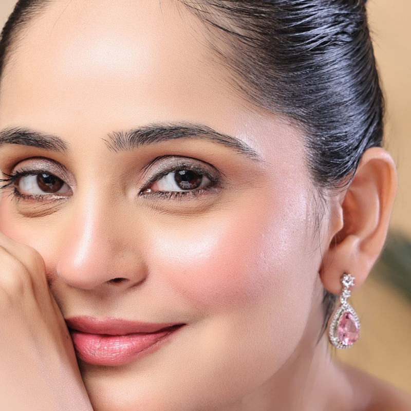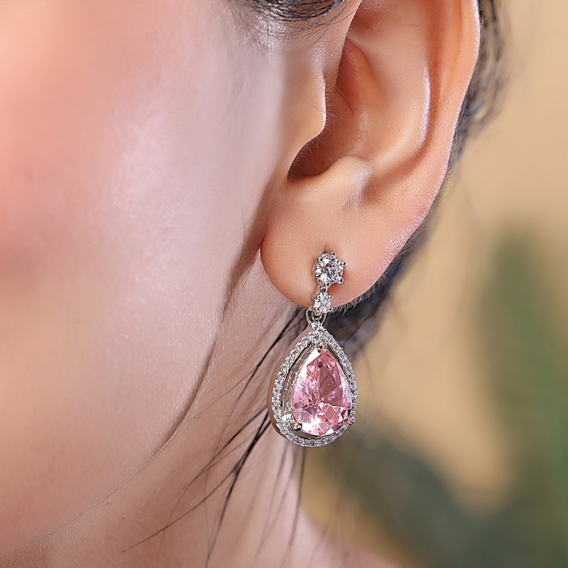 Add a graceful sparkle to your look with these elegant teardrop earrings. Designed with a radiant pink teardrop stone at the center, surrounded by a shimmering crystal halo, these earrings exude sophistication and charm. The delicate crystal-studded top enhances the overall brilliance, making them a perfect choice for parties, date nights, and special occasions.