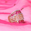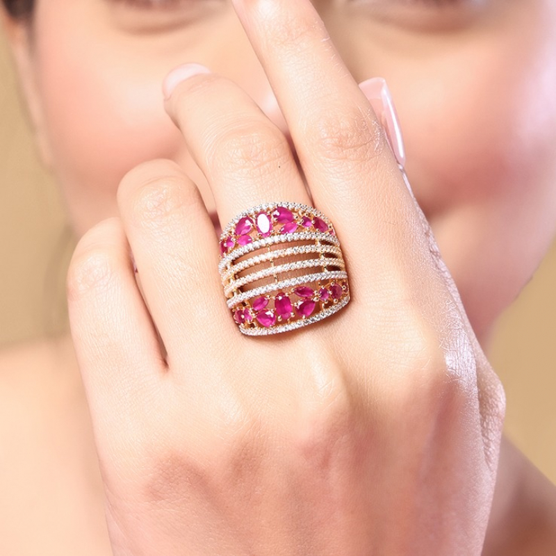 The Blush Harmony Diamond Band Ring is a beautiful fusion of romance and elegance. Featuring a delicate arrangement of soft pink and sparkling white diamonds, this band creates a perfect balance of warmth and brilliance. The gentle blush tones complement the crisp white stones, giving the ring a graceful and feminine charm.